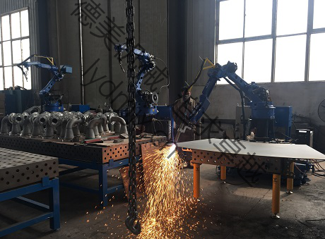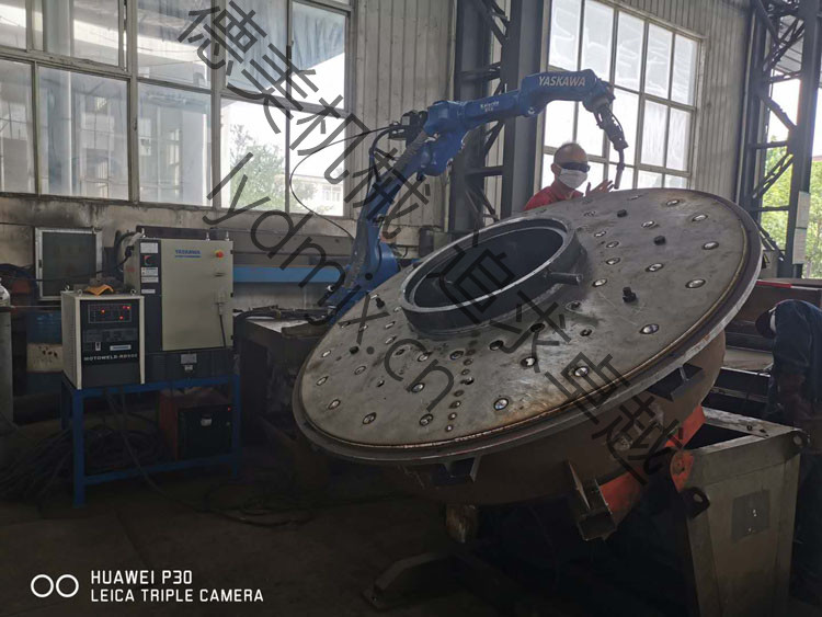 焊接機器人進行不銹鋼板弧形焊接坡口切割...